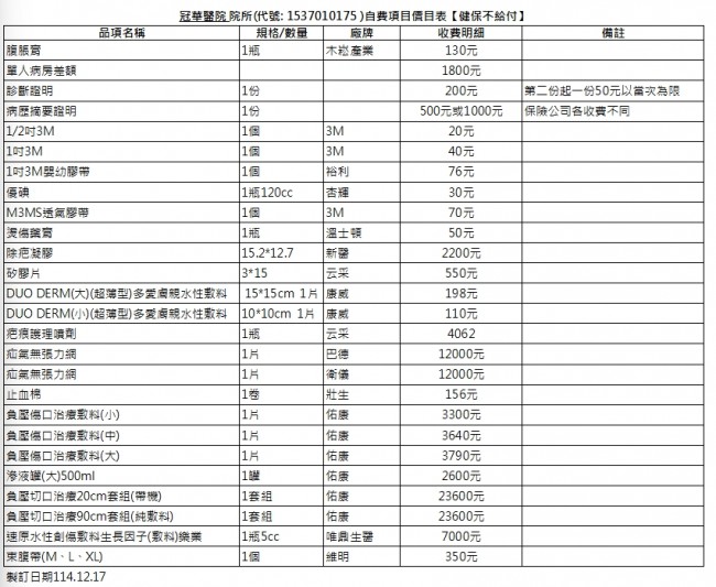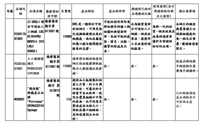 自費項目明細資訊公開